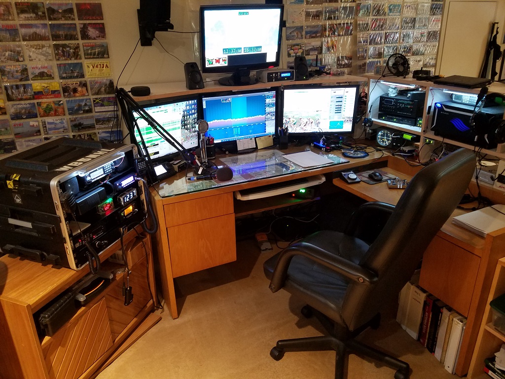 The station computer is a 4.4Ghz AMD quad core machine that serves very well for Flex radio SMARTSDR, digital modes and logging duties. The station is connected full time to the internet via Atlantic Broadband cable modem. I use N3FJP AClog for logging